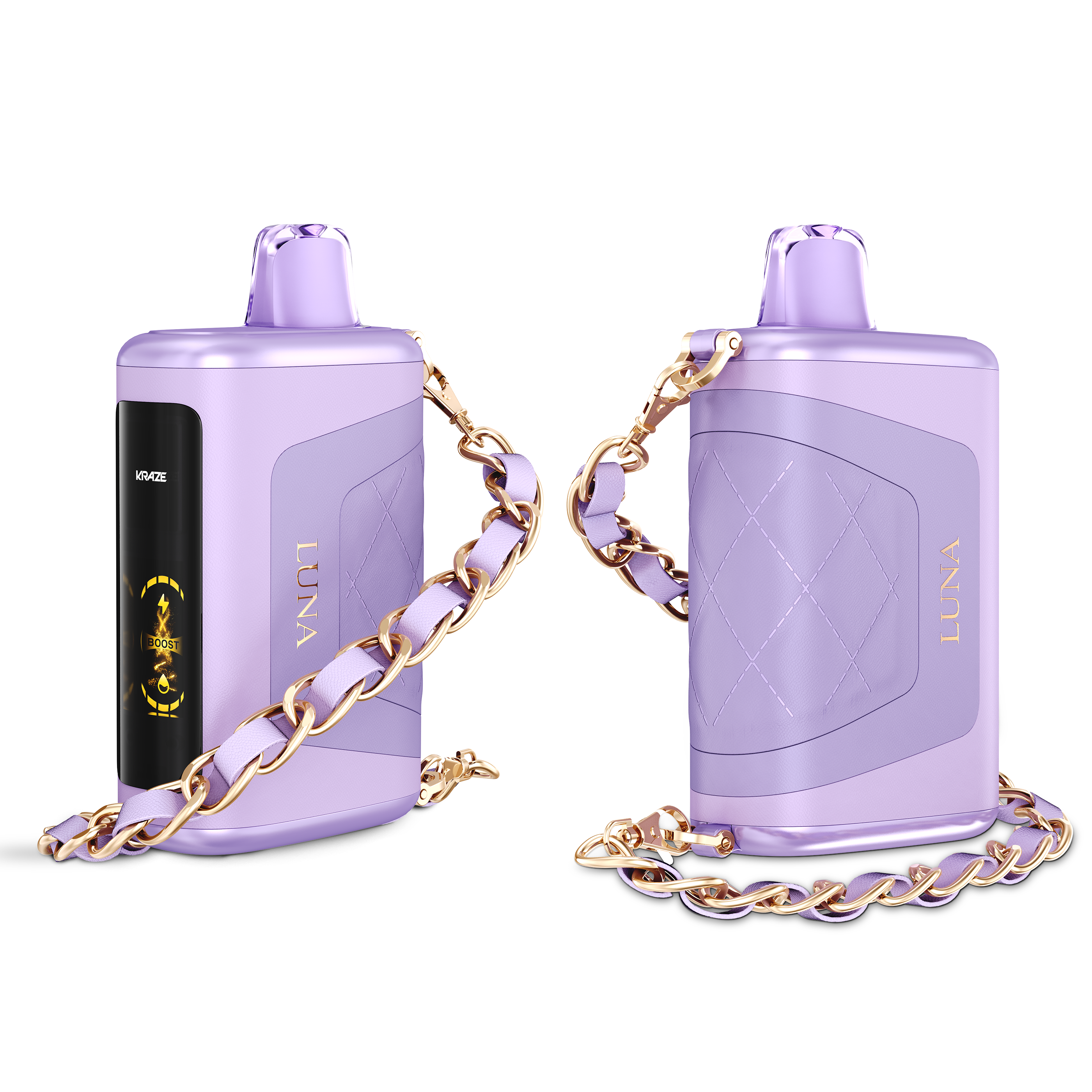 Designed with elegance in mind, the Kraze Luna boasts a premium leather-textured finish, a soft-touch mouthpiece for added comfort, and a stylish bracelet chain for easy portability.